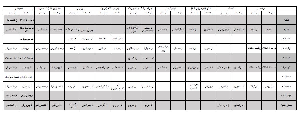 برنامه حضور پزشکان کلینیک در اسفندماه 1403